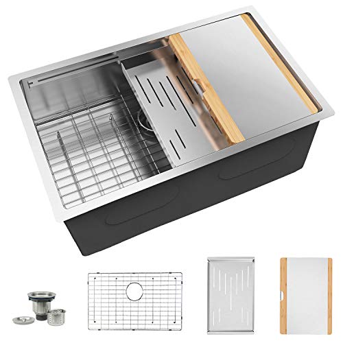 Kitchen Sink Workstation Undermount Sink / Workstation 23" Undermount 16 Gauge Stainless Steel Single ... : Your sink is at the center of the action.. Workstation ledge single bowl apron undermount kitchen sink 33 in. This stylish and functional large single bowl undermount kitchen sink workstation is what your kitchen is missing. This workstation sink is covered with thick pads on all sides, it is guaranteed to be silent while in use, additionally there is an undermount coating that will protect your kitchen cabinet from condensation. Kitchen space is a limited commodity, so every space that you can utilize is a huge win. These attractive sinks help to maximize workspace in the kitchen, while keeping counters clutter free.
