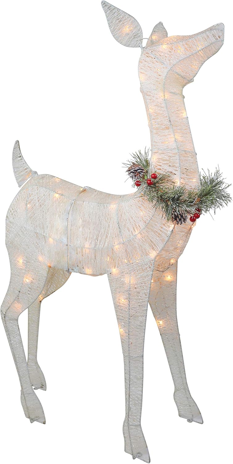 White reindeer lighted christmas yard art decoration.